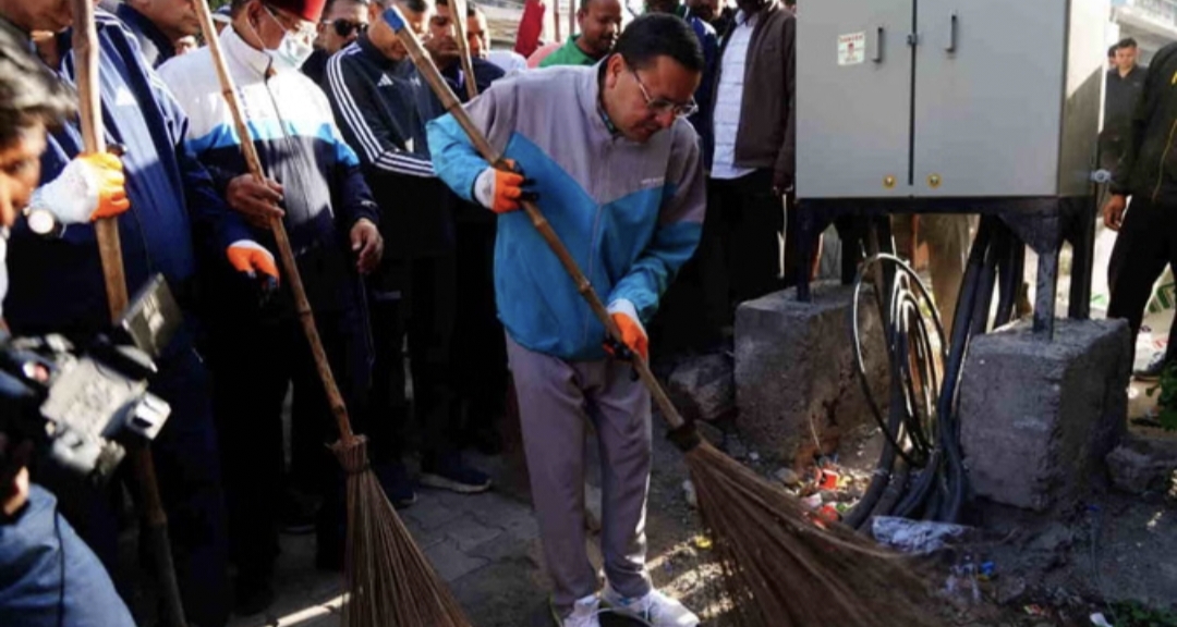 Dehradun: सीएम धामी ने लगाया झाड़ू, मंत्री-विधायकों से साथ मिलकर बल्लूपुर चौक पर चलाया स्वच्छता अभियान