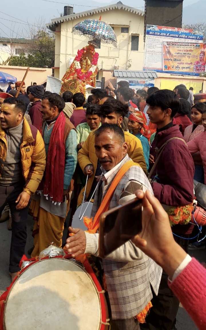 आराध्य कंडार देवता की शोभायात्रा माघ मेला मेला पंडाल में पहुंची जहां मेला समिति ने गर्म जोश के साथ स्वागत किया। और मेला पंडाल से पूरे शहर में भव्य शोभा यात्रा निकाली।